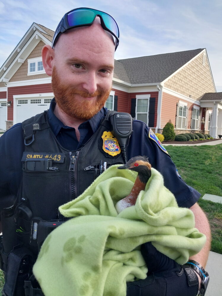 La Plata Police Department’s Corporal B. Smith (#643) responded to the call and located the bird near Camden Circle and Gramby Court. Using a blanket, Cpl. Smith was able to safely capture the waterfowl.