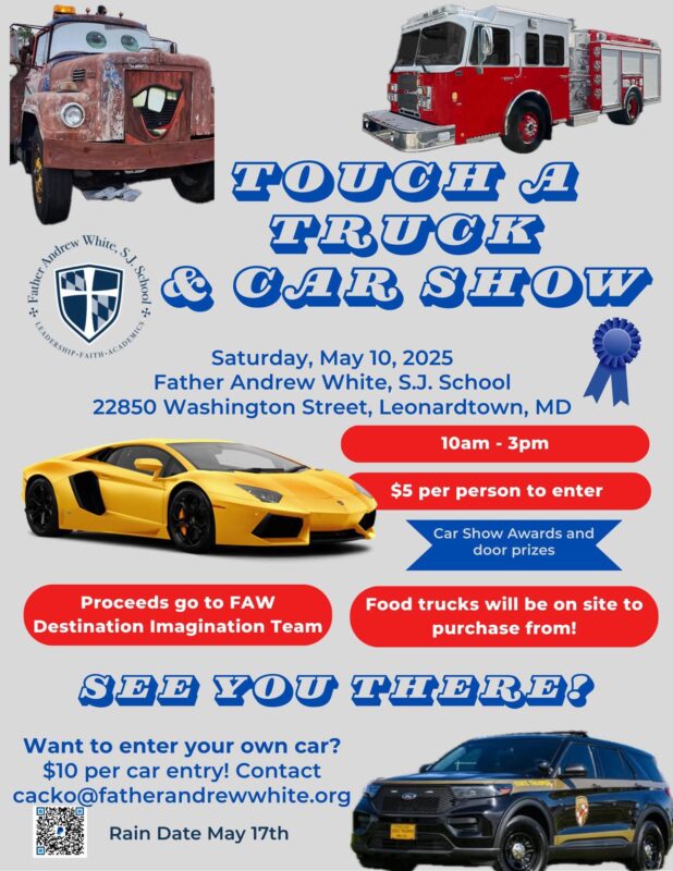 $5 to enter, enjoy the cars, trucks, boats, and more at the first ever Father Andrew White Touch a Truck and Car Show event. Come on out to explore emergency vehicles, fun cars new and old, and food trucks.