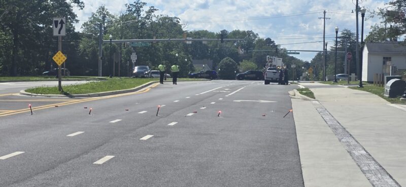 Crews arrived on the scene to find a two vehicle collision with one vehicle into the State Highway Administration electrical box and crosswalk signal which resulted in the traffic lights going out.