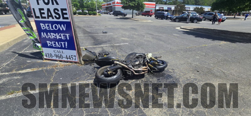 On Sunday, May 11, 2025, at 1:13 p.m., police, firefighters and emergency medical services responded to the St. Mary’s Square located at 21600 Great Mills Road in Lexington Park, for the reported motor vehicle collision involving a motorcycle.