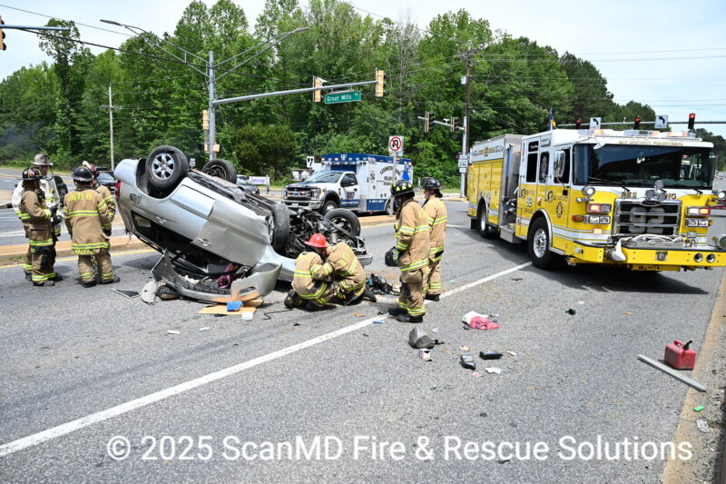 On Tuesday, May 20, 2025, at approximately 2:08 p.m., police, firefighters and emergency medical services responded to Point Lookout Road and Great Mills Road in Great Mills, for the serious motor vehicle collision with one overturned and one possibly trapped.