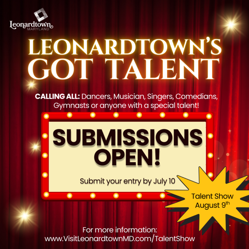 Do you have a hidden talent or a show-stopping skill? Now’s your chance to step into the spotlight! The Town of Leonardtown is excited to announce that audition submissions are officially open for the first-ever Leonardtown’s Got Talent — a community-wide talent competition designed to showcase the incredible performers of St. Mary’s County.