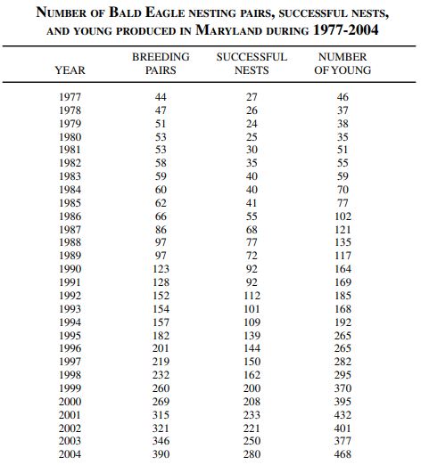 DNR scientists tracked both breeding pairs and the number of young. Glenn Therres, originally published in Maryland Birdlife