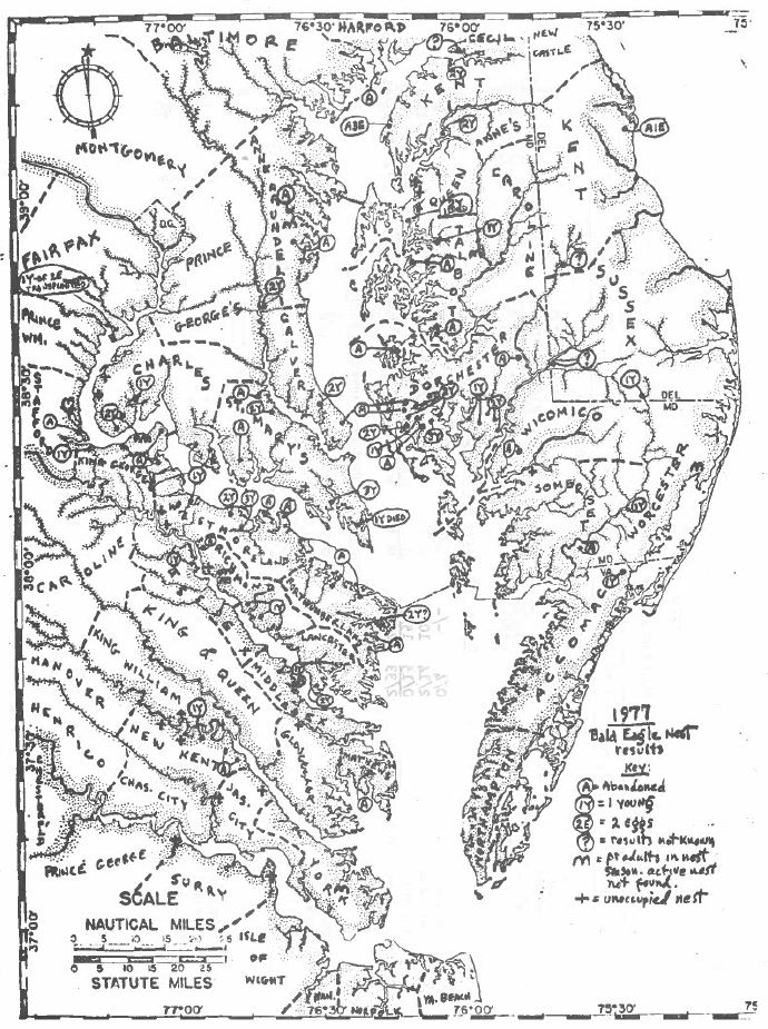 The department began its aerial surveys in 1977, taking over from earlier surveys conducted by the Audubon Naturalist Society (now Nature Forward). That year, scientists found only 44 breeding pairs—the lowest on record.