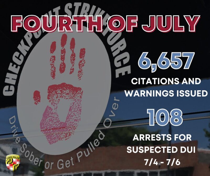 Maryland State Police Make Over 190 Suspected DUI Arrested During First Week of July, 2025