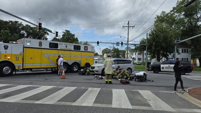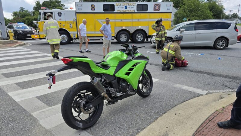 On Tuesday, July 15, 2025, at approximately 3:20 p.m., police, firefighters and emergency medical services responded to the area of Great Mills Road and Midway Drive in Lexington Park, for the reported motor vehicle collision involving a motorcycle.