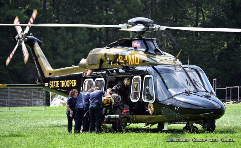 Maryland State Police Aviation was requested to land nearby to transport the patient for precautionary reasons.