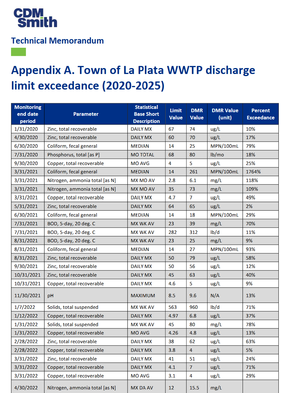 The Town confirmed it has spent $15,862.50 of a $20,000 contract with CDM Smith for the assessment. While the exact cost of potential fines is still being determined, La Plata officials are working closely with MDE to minimize penalties so funds can be used for facility improvements instead.