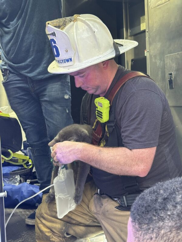 Fire and emergency medical technicians rendered aid and provided oxygen to the pet due to smoke inhalation. A neighbor was able to transport the cat to the Mid-Atlantic Animal Specialty Hospital in Huntingtown, as the three homeowners/occupants were transported to an area hospital by ambulance.