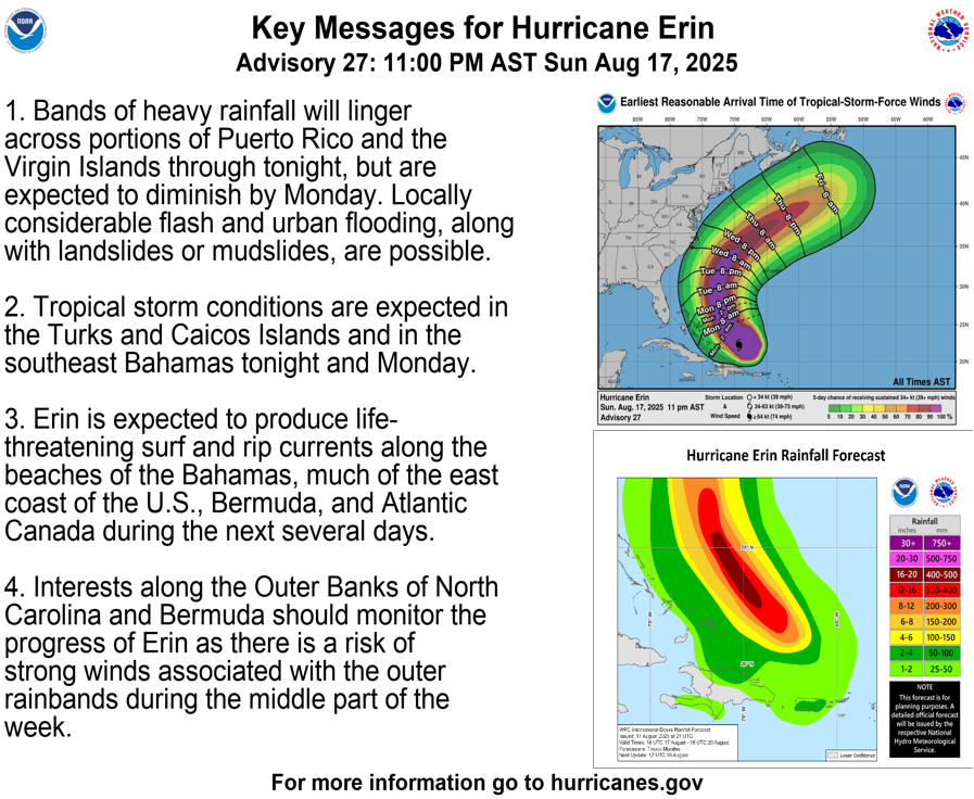 As of 1117 PM EDT Sun Aug 17 2025 – .SYNOPSIS…Major Hurricane Erin is near 22.3N 69.3W at 11 PM
