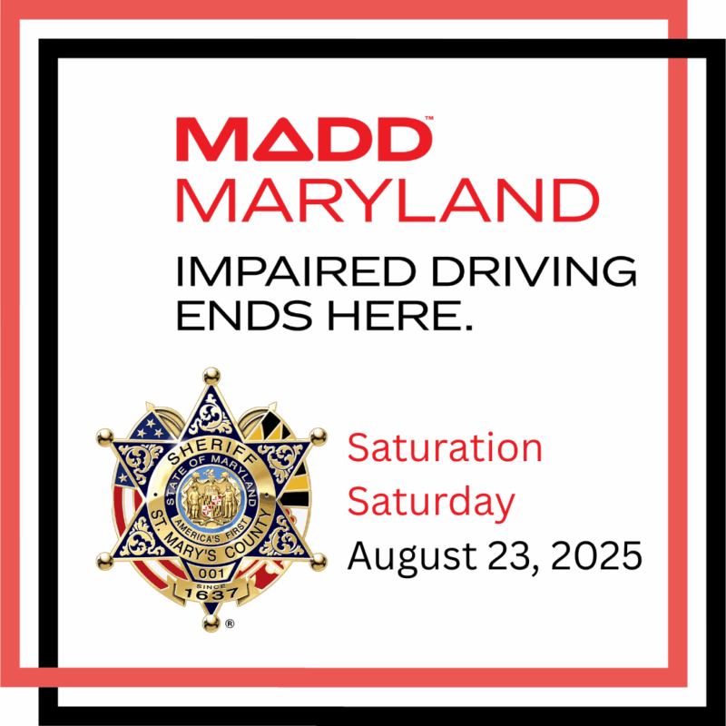 The St. Mary’s County Sheriff’s Office is joining forces with Mothers Against Drunk Driving (MADD) this Saturday, August 23, 2025, for “Saturation Saturday,” a nationwide initiative aimed at preventing impaired driving and saving lives.