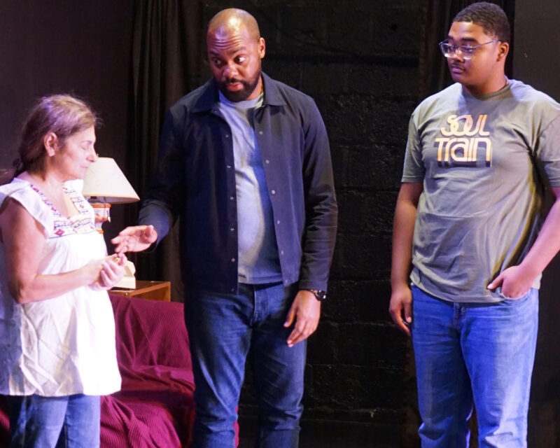Jonie McCright (as Deirdre Hawkins), Pierre Walters (as Alex Hawkins) and Derrell Gross Jr. (as Kibuka Hawkins) in a scene from Opening Night’s “What Was Done,” opening Friday, Sept. 5 at the Indian Head Black Box Theatre.