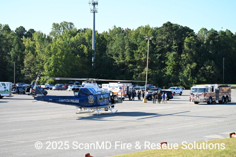 Maryland State Police Helicopter Trooper 7, and U.S. Park Police Eagle 1 landed at the Hollywood Volunteer Fire Department.