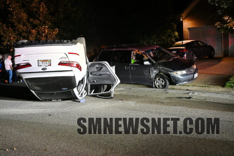 911 callers reported a vehicle was overturned in the middle of the street with unknown occupants or injuries.
