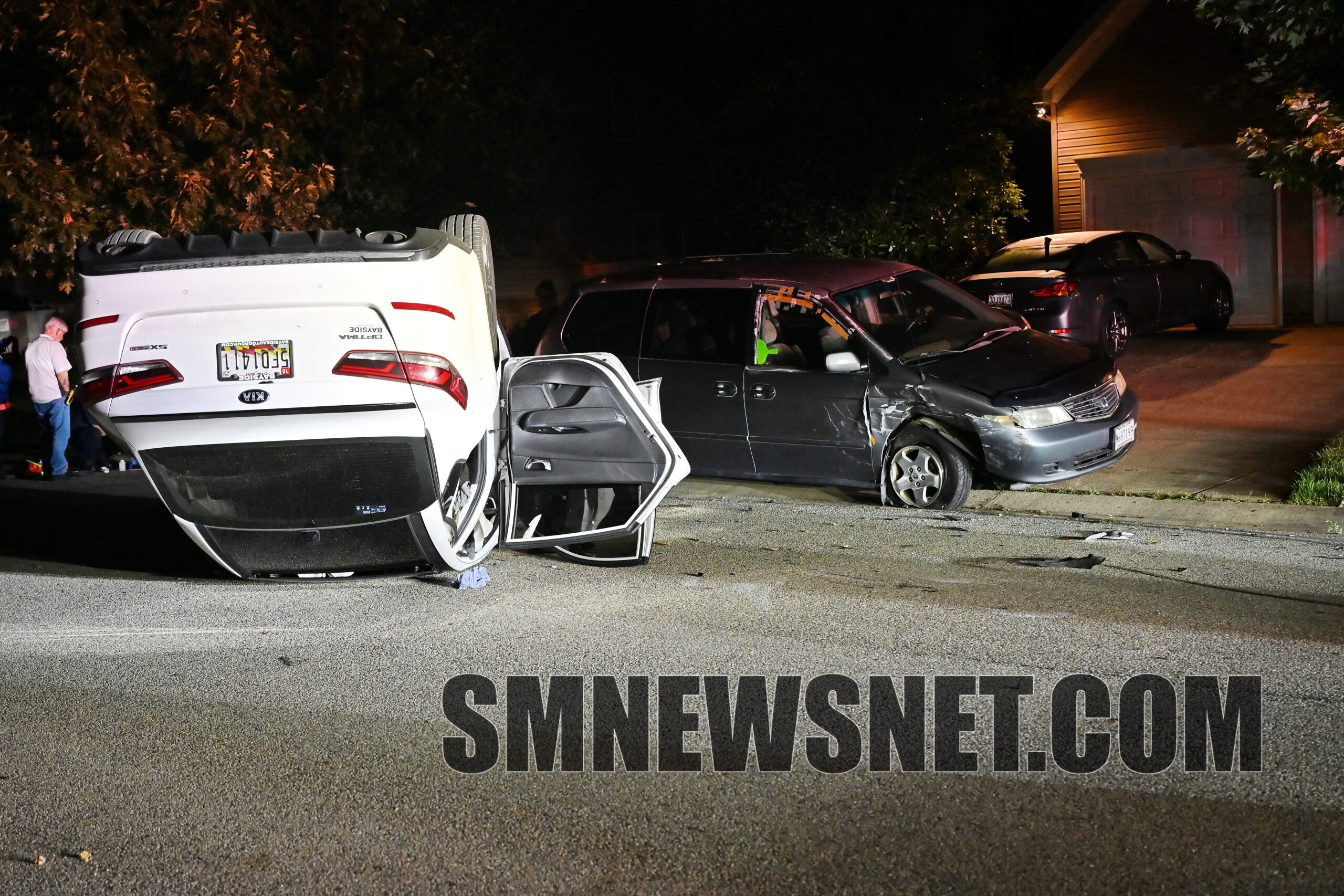 Crews arrived on the scene to confirm a single Kia sedan on its roof in the middle of the street after striking a park and unoccupied vehicle.