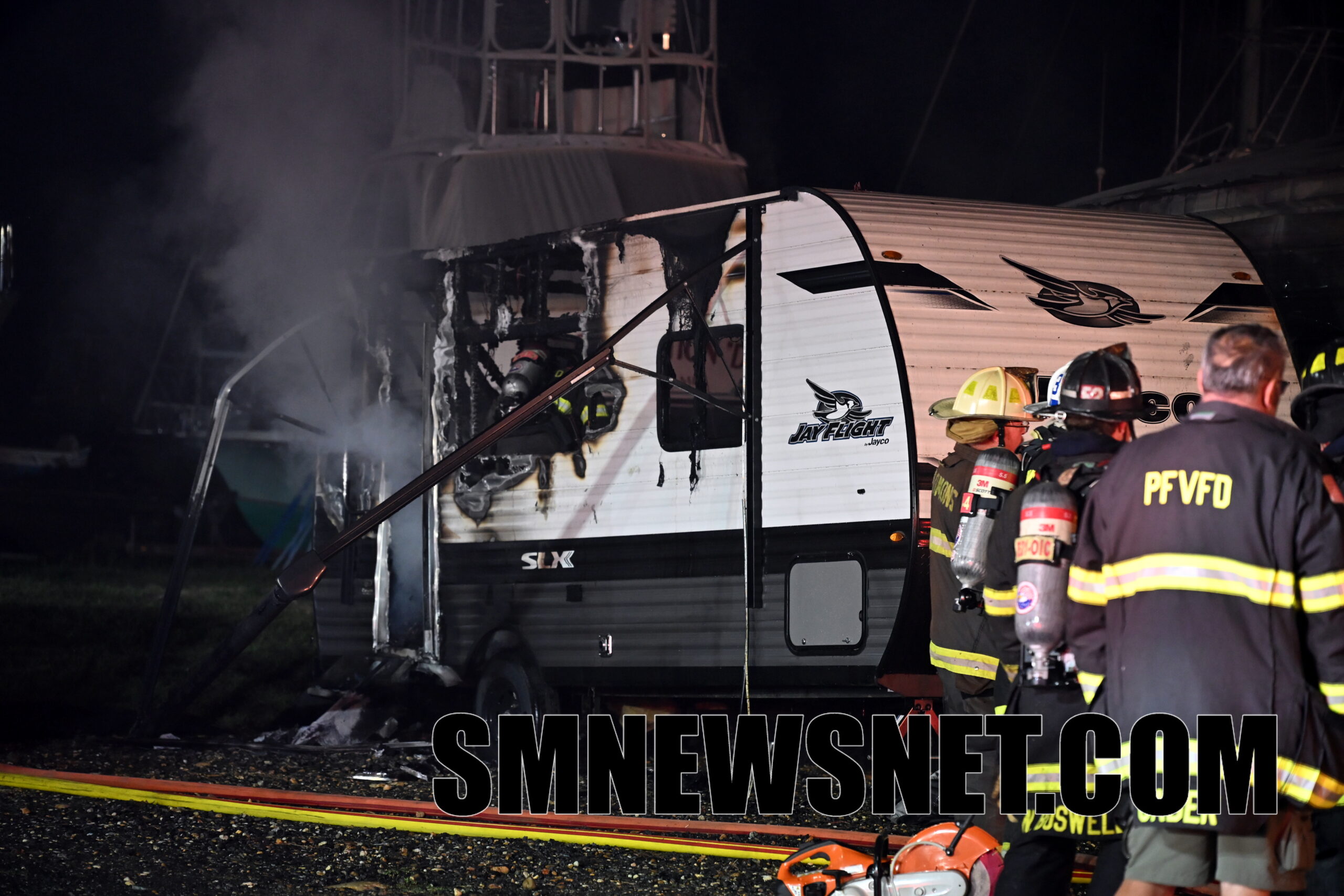 On Monday, October 6, 2025, at approximately 5:23 a.m., firefighters from Solomons, Prince Frederick, St. Leonard, Bay District, and Hollywood responded to the Spring Cove Marina located at 455 Lore Road in Solomons, for the reported structure on fire.