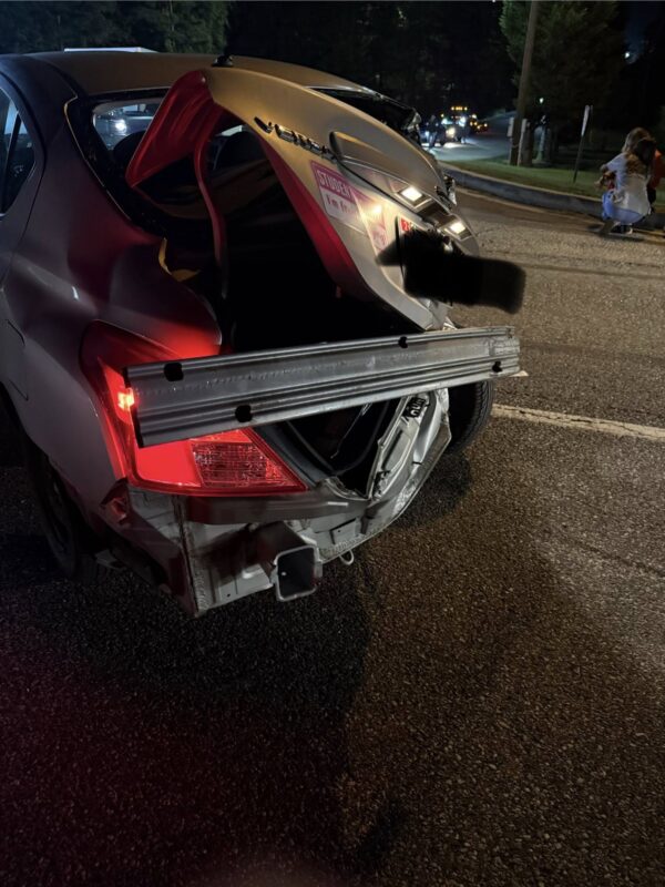 “Also we can tell it’s possibly a F250 or f350 because of lights on top!! Parents worst nightmare tonight! Some jerk rear ended my baby and didn’t even have the decency to stop! Local friends-If you see a white F250/F350with a jacked up left side front end please get tag # and let us know immediately! She is sore and traumatized of course but checked out at ER and is ok. It happened on 234 at entrance of MIR.”