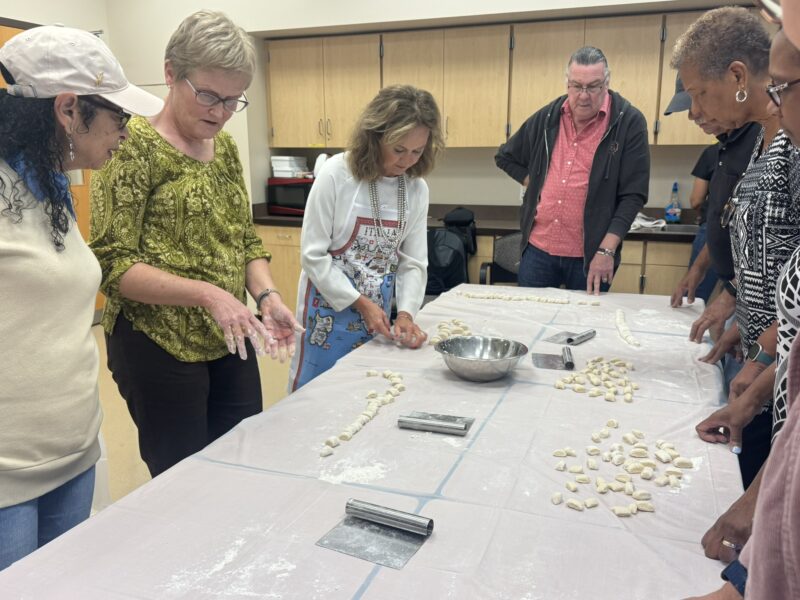 As part of her CSM Thrive 60+ course The Art of Italian Cooking, course instructor Simonetta Baldassari (third from left) demonstrates how to make homemade gnocchi.