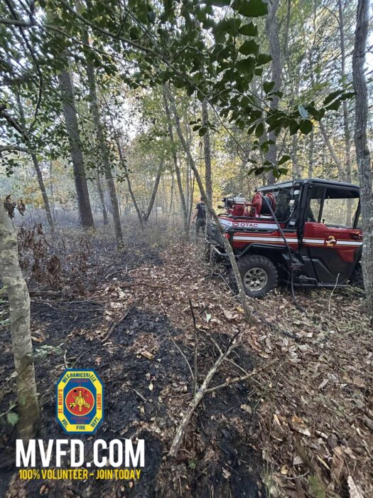 Firefighters from Mechanicsville VFD quickly arrived with Engine 23, Tanker 2 and UTV 2 to find a large shed fully engulfed in flames with extensions to the nearby woods.
