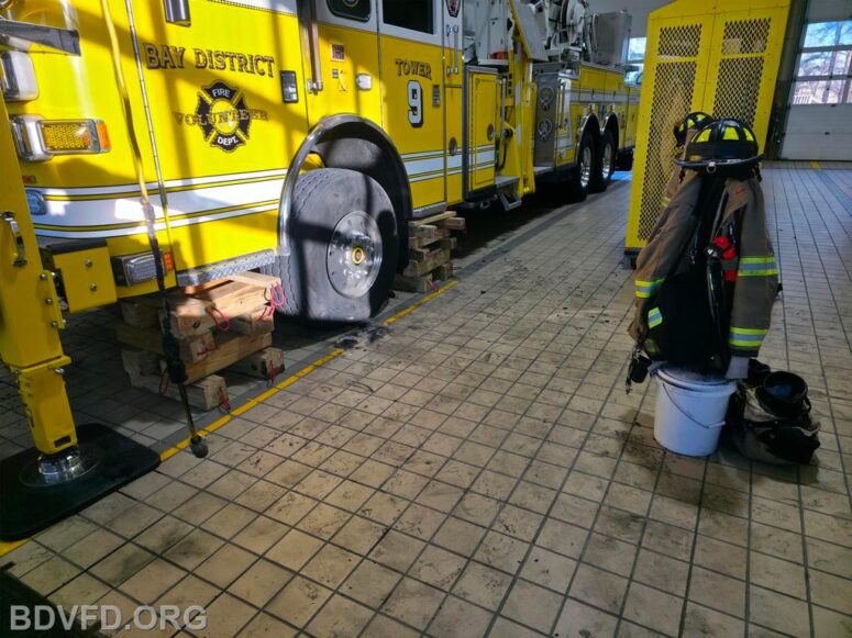 In the early morning hours today, Monday, December 22nd, 2025, members of Station 9 were alerted to the smell of smoke within the firehouse. Upon investigation, firefighters discovered an active fire on the exterior of Tower 9, which was parked at the station.