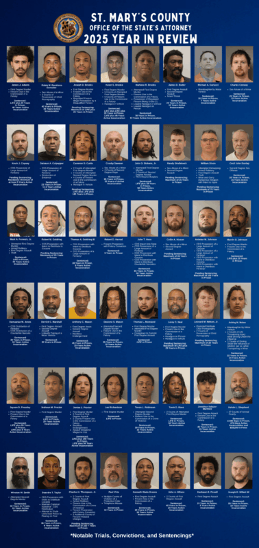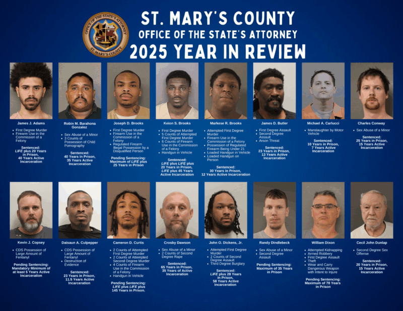 A Year in Review: As 2025 draws to a close, State’s Attorney Jaymi Sterling and the incredibly dedicated team at the St. Mary’s County State’s Attorney’s Office reaffirm their unwavering dedication to justice, innovation, and the safety of our County. With sincere appreciation for the opportunity to serve, State’s Attorney Sterling looks forward to continuing the progress made this year. Together, we will build on these achievements to create a safer St. Mary’s County.