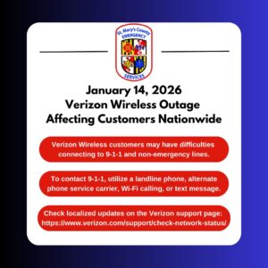 The St. Mary’s County Department of Emergency Services has reported Verizon Wireless customers may be having difficulties connecting to 9-1-1 and non-emergency lines.