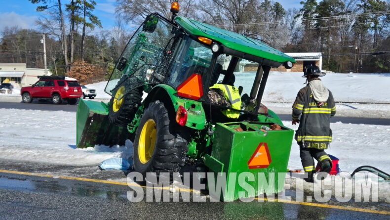 Multiple 911 callers reported a vehicle struck a tractor snow plow head-on, with the operator of the tractor trapped inside.