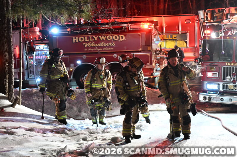 On Monday, January 26, 2026, at approximately 8:40 p.m., firefighters from Leonardtown, Hollywood, Bay District, Mechanicsville, and Seventh District responded to the 23900 block of McIntosh Road in Hollywood, for the reported house fire.