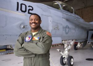 Hooper serves as a naval flight officer assigned to VFA-2.