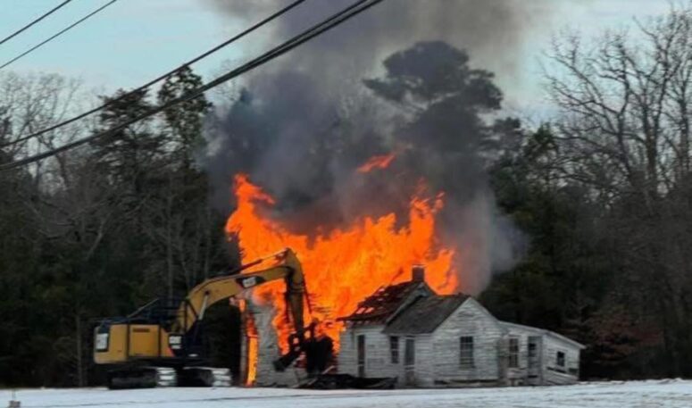 The distinctive wood-framed home, known for its unusual “telescoping” construction, featured a larger main section with two smaller additions attached in descending order — a style often seen in early tenant houses on Southern farms. The structure drew attention from drivers, cyclists, and local history enthusiasts who appreciated its charm and rustic character.