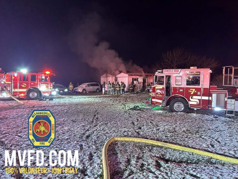 On Friday, March 13, 2026, at approximately 2:41 a.m., firefighters from Mechanicsville, Seventh District, Hughesville, Hollywood and Charles County responded to the 39000 block of Harper’s Corner Road in Mechanicsville, for the reported structure fire.
